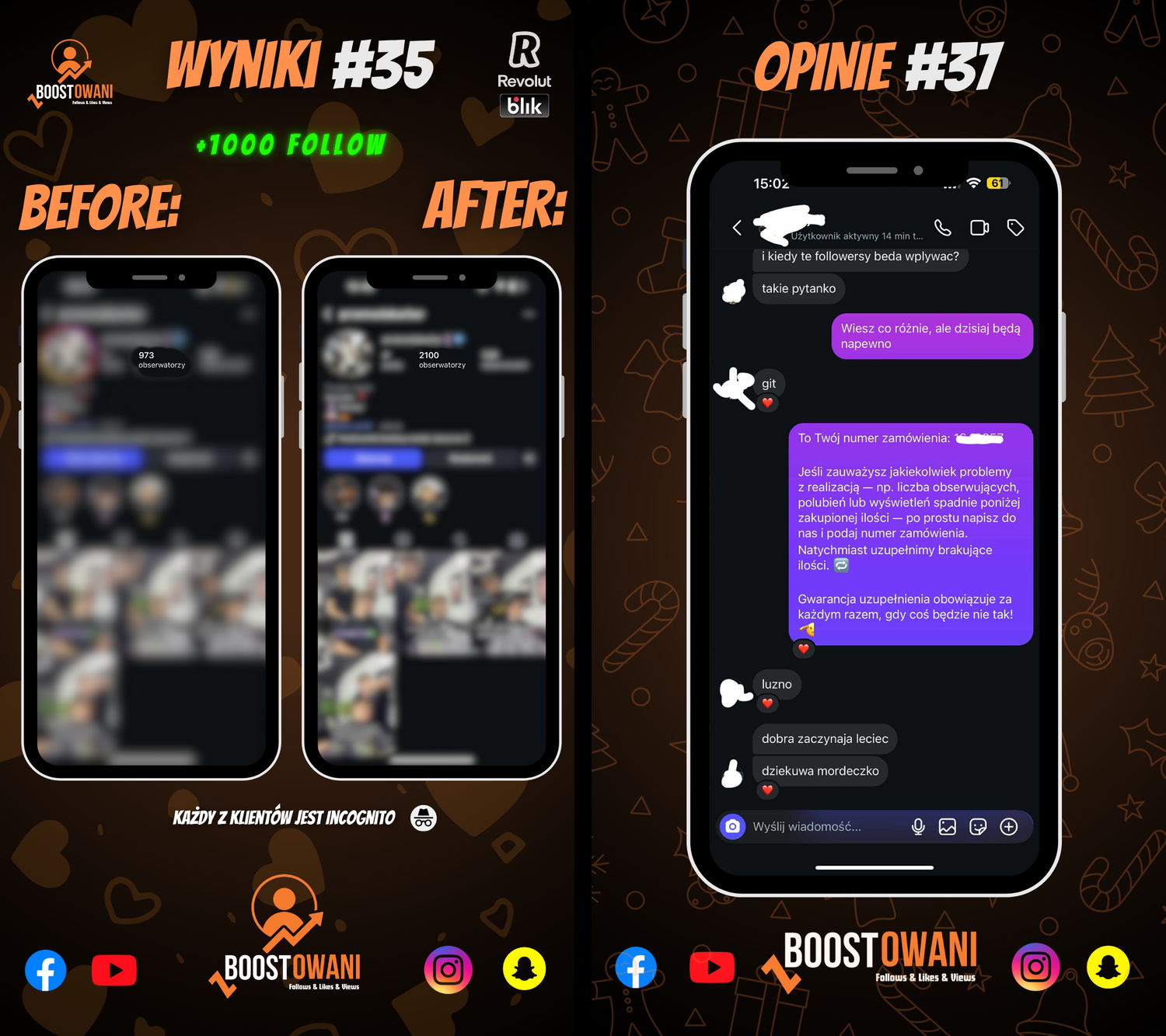 🛡️ Gwarancja realizacji oraz wsparcia Jeśli zauważysz jakiekolwiek problemy z realizacją — np. liczba obserwujących, polubień lub wyświetleń spadnie poniżej zakupionej ilości — po prostu napisz do nas i podaj numer zamówienia. Natychmiast uzupełnimy brakujące ilości. 🔁 Działamy transparentnie i dbamy o zadowolenie każdego klienta. Gwarancja uzupełnienia obowiązuje za każdym razem, gdy coś będzie nie tak!